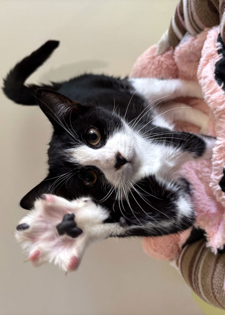 Daan is een vrolijke kater van 7 maanden die staat te springen om te verhuizen. Hij probeert nog zo z'n best te doen met zijn praatjes, dat meer op krijsen lijkt. Subtiel miauwen? Daar doet hij niet aan! Daan kiest liever voor het volle podiumgeluid: een krachtige klaagzang die je wakker houdt én aan het lachen maakt. Of hij nu een lege voerbak ziet of gewoon zin heeft in een praatje, hij laat zich horen.