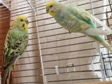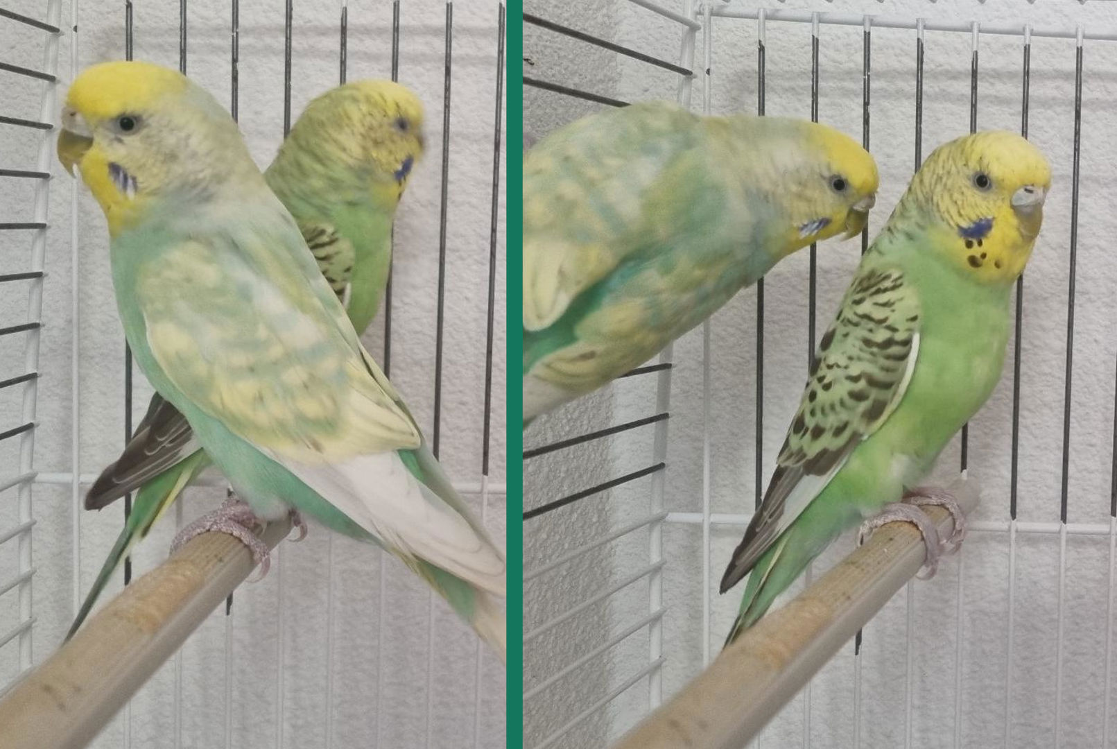 Gio en Gia zijn twee mooie grasparkietjes die op zoek zijn naar een nieuw onderkomen. Ze zijn prachtig om te zien en zijn een gezellige toevoeging aan de huiskamer. Ze kletsen heel wat af en vinden het heel gezellig als er wat te zien is voor ze. Ze staan bij ons in de kantine en genieten van de mensen en de geluiden die daar bij horen. Toch zijn ze niet tam. Ze zijn nu ongeveer een jaar oud maar zijn niet tam gemaakt door hun vorige eigenaar. Iemand die daar enthousiast mee aan de slag wil kan mogelijk nog veel behalen bij ze. En anders zijn ze een mooie toevoeging aan een groep parkieten in een volière.