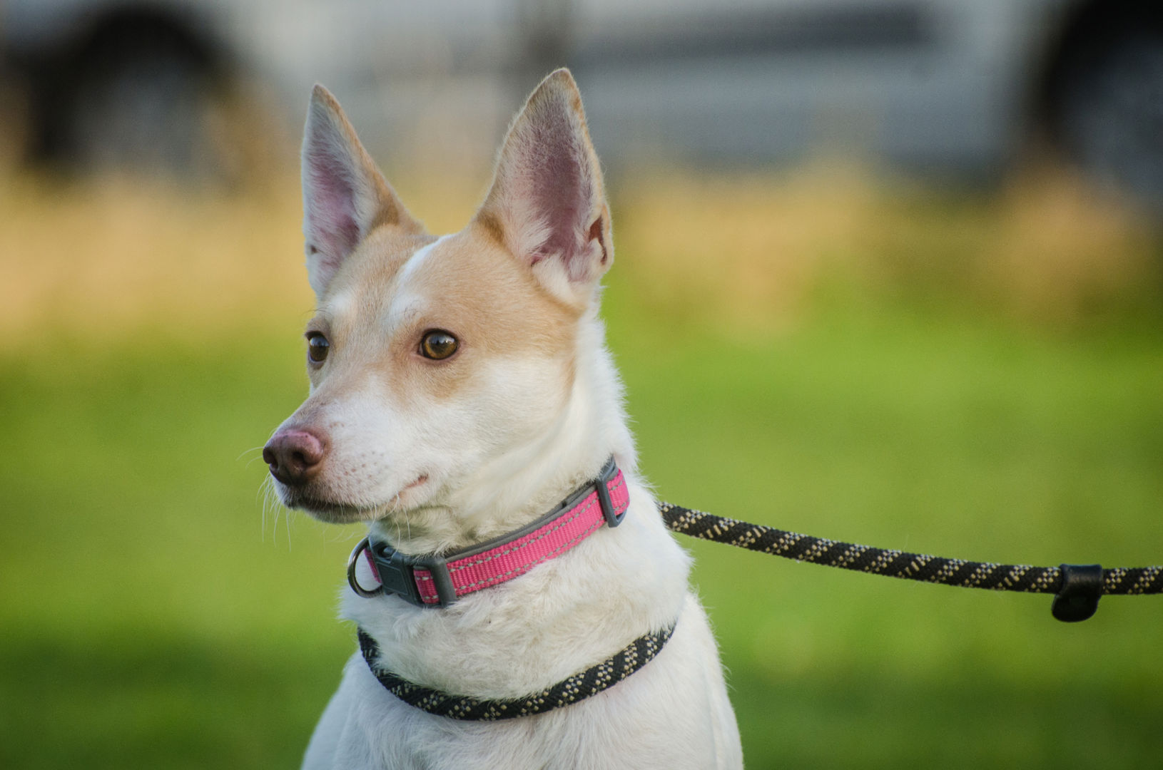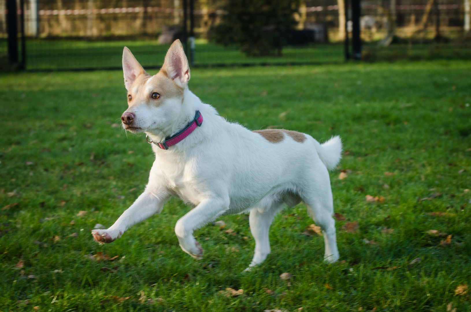 Binky is een klein hondje, iets groter dan een Jack Russel. Hij heeft prachtige staande oren en lichte ogen. Hij is een parmantig hondje dat netjes aan de lijn loopt. Bij zijn eigenaar liep hij ook veel los. Zijn baasje was zijn rots in de branding, dus daar bleef hij netjes bij in de buurt. Hier zien we een hondje dat echt even een band met je moet bouwen voordat hij los kan lopen bij je.
