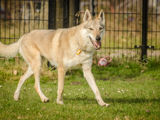 Naya is een slanke, tengere teef vol energie. Ze is actief en het liefst aan het spelen met haar roedelgenootjes. Ze is hier gekomen met twee andere honden uit het huishouden. Met de teef klikte het niet zo goed, met de oudere reu wel. Maar omdat de reu duidelijk te oud wordt voor haar lichamelijke spel zijn ze geen ideaal duo. Naya zou zeker baat hebben bij een roedel met jongere wolfshonden van wie de energiebehoefte meer op hetzelfde niveau ligt.