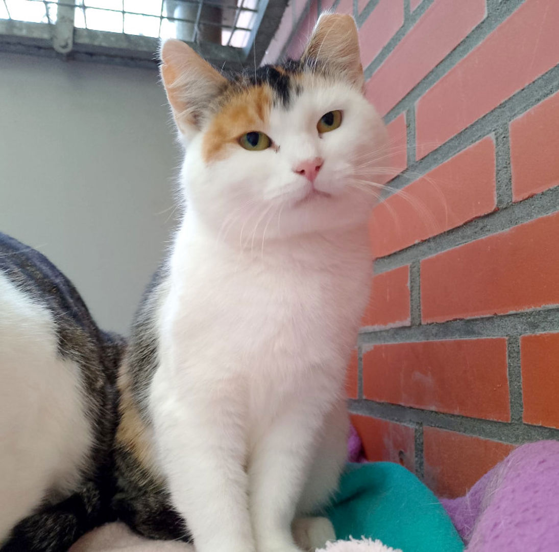 Carla is een poes die het liefst zo hoog mogelijk zit, vaak verstopt achter kater Casper. Dat is het eerste wat je ziet wanneer je de kamer binnenkomt. Maar wie haar rustig benadert en iets lekkers meebrengt, ziet haar langzaam loskomen. Geef haar de tijd, want Carla kijkt soms liever nog even de kat uit de boom. Daarna komt ze voorzichtig dichterbij en blijkt ze een lieve dame te zijn die van een knuffel kan genieten.