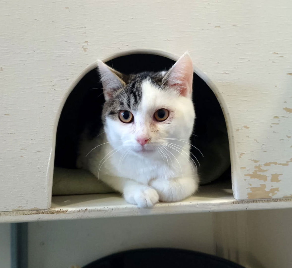 Epke is een hele lieve, maar voorzichtige kater. Hij waardeert het dan ook zeker als hij de laatste paar centimeter zelf naar je toe kan komen. Hij is erg rustig en kijkt het liefst op een afstandje even de kat uit de boom. Wel is hij erg nieuwsgierig, en houdt hij je dan ook zeker in de gaten. Als je hem rustig benadert en de tijd geeft, vindt hij veel prima. Rust vindt hij erg belangrijk, en dit geeft hij dan ook aan je terug. Wat lekkers pakt hij rustig, en erg voorzichtig, uit je hand en eet hij het liefst ook in alle rust op.