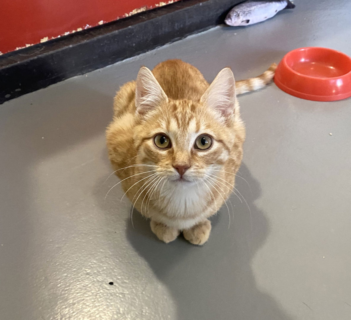 Achter het raam laat hij zien dat hij alles aankan en super stoer is. Maar als hij je niet kent vindt hij het wel allemaal nog wat spannend. Wel laat hij zien dat hij erg nieuwsgierig is. Zodra hij je leert kennen speelt hij er op los. Je hoeft maar je hand te bewegen over de vloer en hij springt er op af.