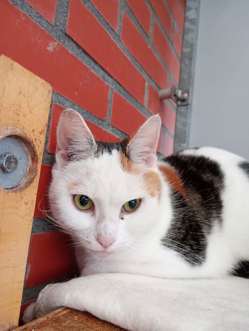 Fristi is een lapjespoes van zes jaar die haar eigen unieke karakter heeft. Ze geniet ervan als je haar kopje aait, maar verder houdt ze liever wat afstand. Het is een rustige kat die graag hoog zit en van daaruit alles observeert. Ze komt gezellig bij je liggen, al is ze geen echte schootkat.
