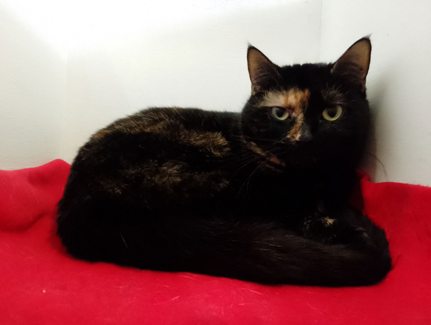 Kruimeltje is een schildpadpoes van 4 jaar en 9 maanden. Ze kwam bij ons in de opvang terecht samen met Loeloe en Saar, nadat hun eigenaar helaas is overleden. Voor haar was dat een grote verandering en dat merk je nog steeds een beetje aan haar.