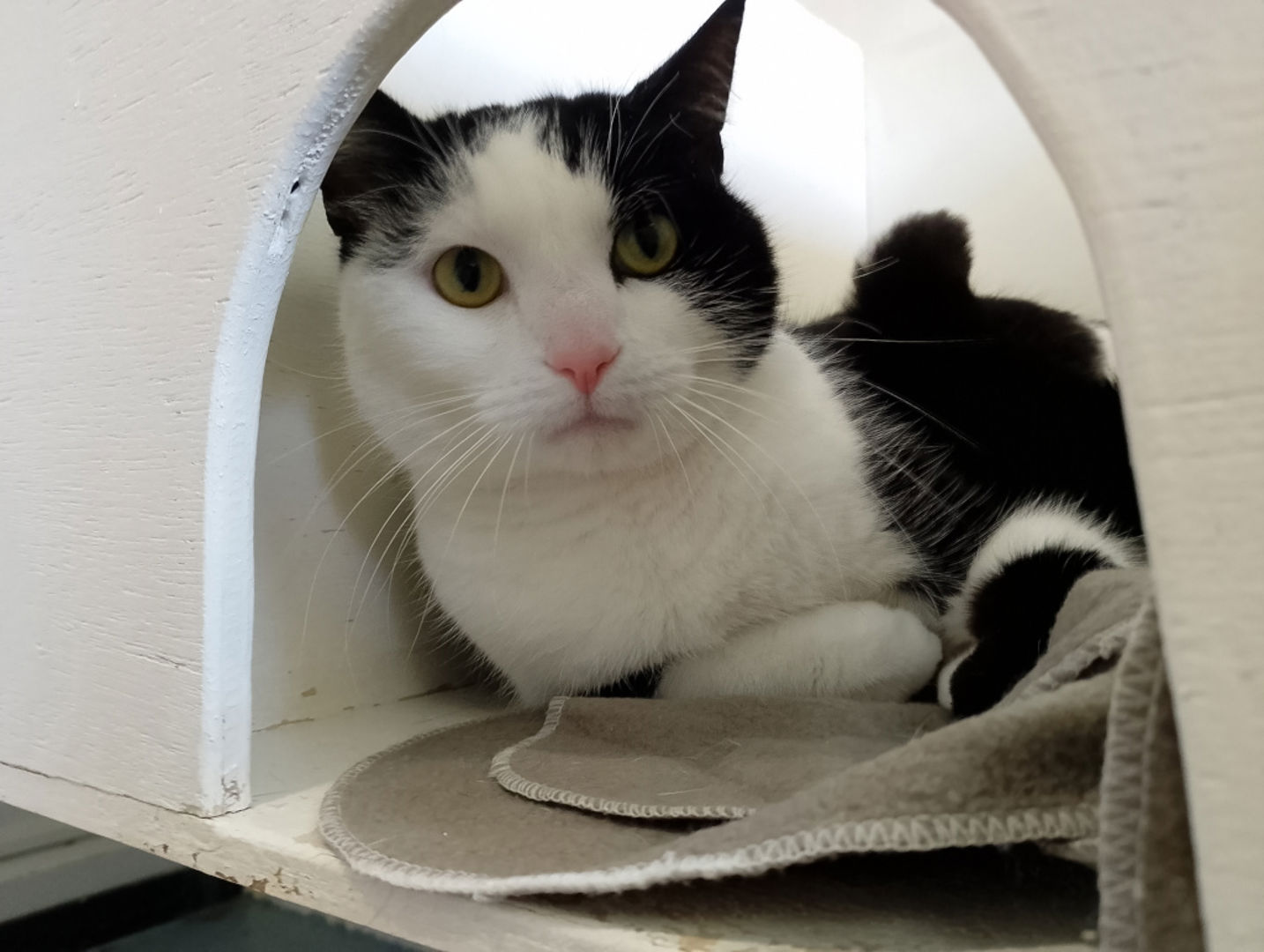 Loeloe is een kater van 4 jaar en 9 maanden die samen met Saar en Kruimeltje bij ons in de opvang terechtkwam na het overlijden van zijn eigenaar. Zijn wereld stond ineens op z’n kop en dat merkten we meteen aan hem. In het begin keek hij liever de kat uit de boom en verstopte hij zich het liefst onder een kleedje, alsof hij hoopte dat de wereld even stil kon blijven staan.