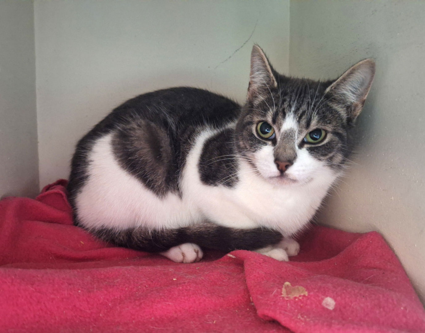 Luba is een jonge kater van vier maanden die het leven in de opvang nog wat spannend vindt. Hij komt van een boerderij, waar alles vertrouwd en overzichtelijk was. En dan zit je ineens in een opvang vol nieuwe geluiden, onbekende geuren en mensen die iets van je willen. Hij is nieuwsgierig, maar houdt soms toch liever wat afstand door hard te blazen. Niet omdat hij mensen niks vindt, maar omdat dit voor hem nu de veiligste manier is om met alles om te gaan. Hij vertelt ons eigenlijk: “Geef me even tijd.”