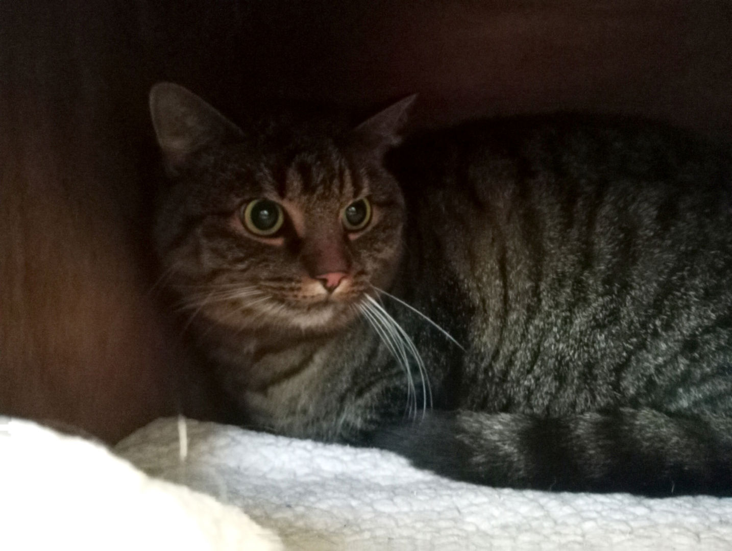 Mimi (lapjespoes) is een zachtaardige en lieve poes, maar iets meer op zichzelf dan Nala. Ze komt graag langs voor een knuffel, maar geniet ook van haar eigen momentjes. Buiten spelen en ontdekken doet ze met plezier en daar voelt ze zich helemaal op haar gemak. Mimi eet graag haar brokjes, maar laat natvoer vaak staan; alleen haar favoriete kipblokjes van de Lidl.