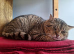 Nova is een kater van ongeveer 7 jaar die via een vangactie bij ons terechtkwam, nadat hij jarenlang op Ameland zijn vrije leventje heeft geleid. De overgang naar een vangkooi, de veerboot en daarna de opvang was voor hem ontzettend spannend. Deze grote kater probeerde zich in het begin zo klein mogelijk te maken, verstopt achter een kattenbak in de hoop dat we hem niet zouden zien. Zijn plan mislukte altijd: heel voorzichtig verscheen er één oog boven de rand, gevolgd door een stoer geblaas.