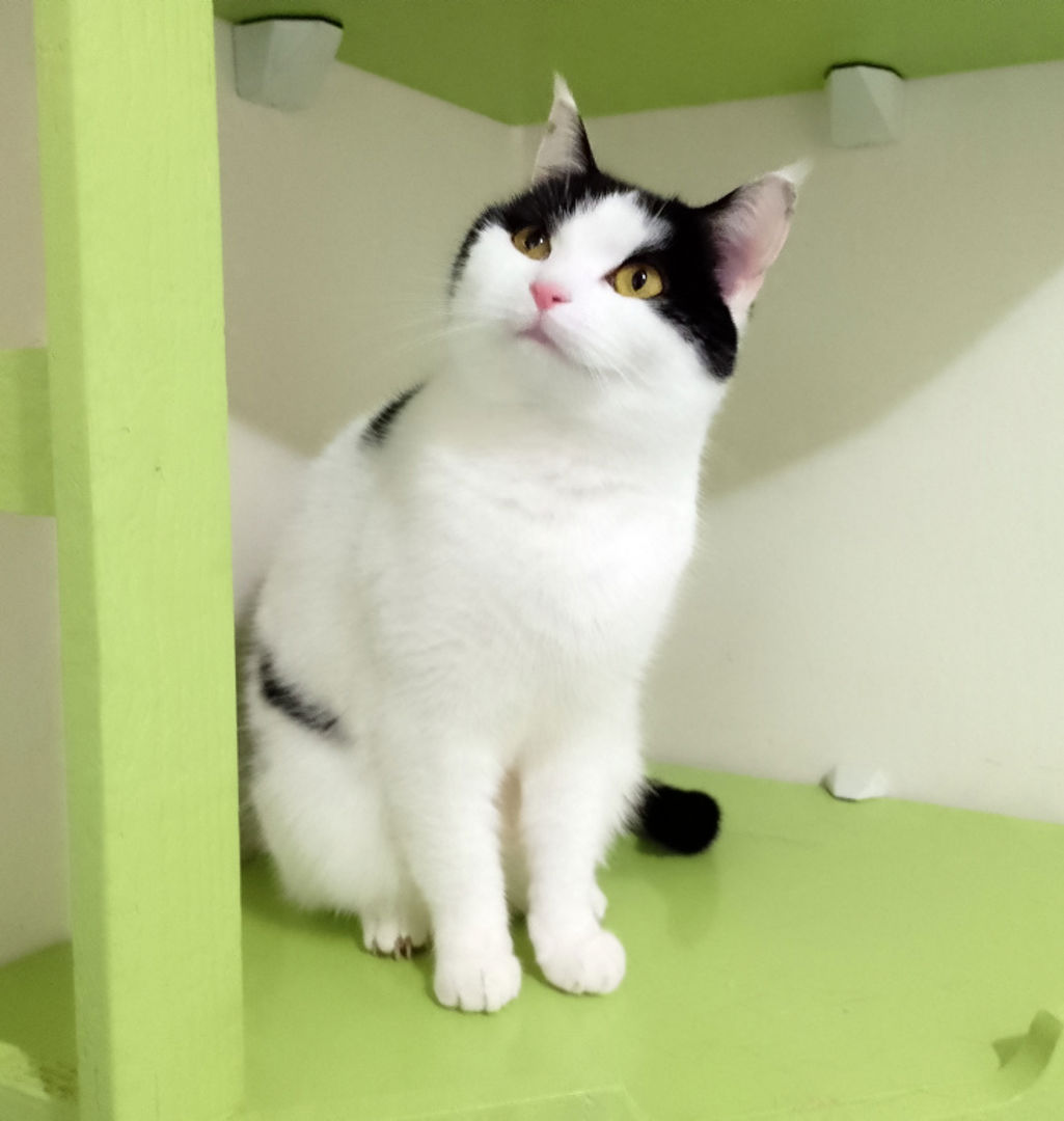 Sjors valt meteen op door zijn rechteroogje. Dat is al sinds hij een kitten was wat verkleefd. Tijdens zijn castratie is een vliesje verwijderd, maar een deel kon niet meer worden losgemaakt. Gelukkig heeft hij er na de behandeling geen last meer van. Zijn zicht is wat beperkt, maar Sjors zelf lijkt dat totaal niet te deren.