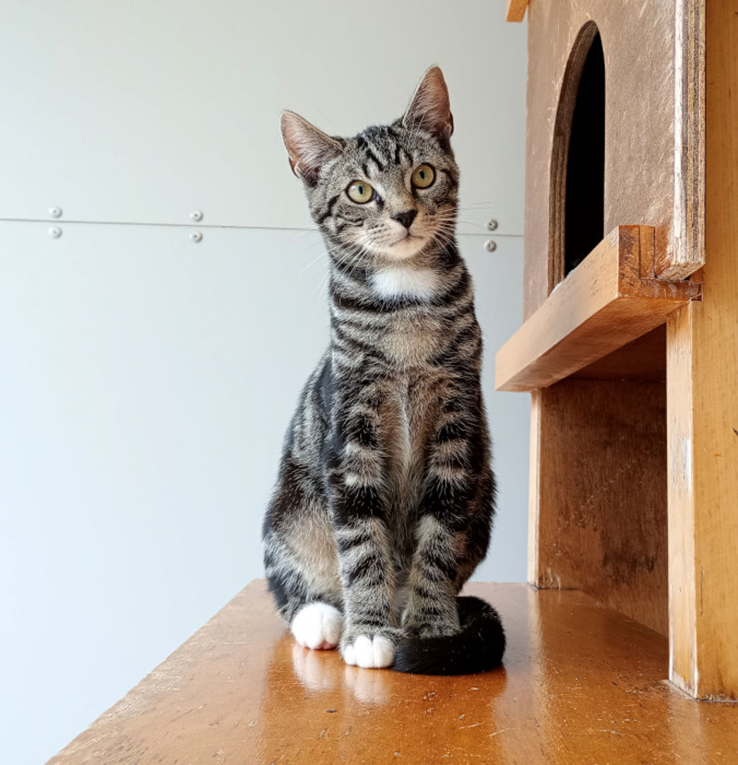 Nu ze wat langer bij ons zijn, zien we langzaam verandering. De cypers/witte kater miauwt je inmiddels welkom als je binnenkomt. Het lapjespoesje kijkt je nieuwsgierig aan, vooral als je iets lekkers of een speeltje meebrengt. Het zwarte poesje is nog voorzichtig, maar durft al een snoepje uit je hand te pakken. Ga je rustig bij ze zitten, dan komen ze kijken wat je komt doen.
