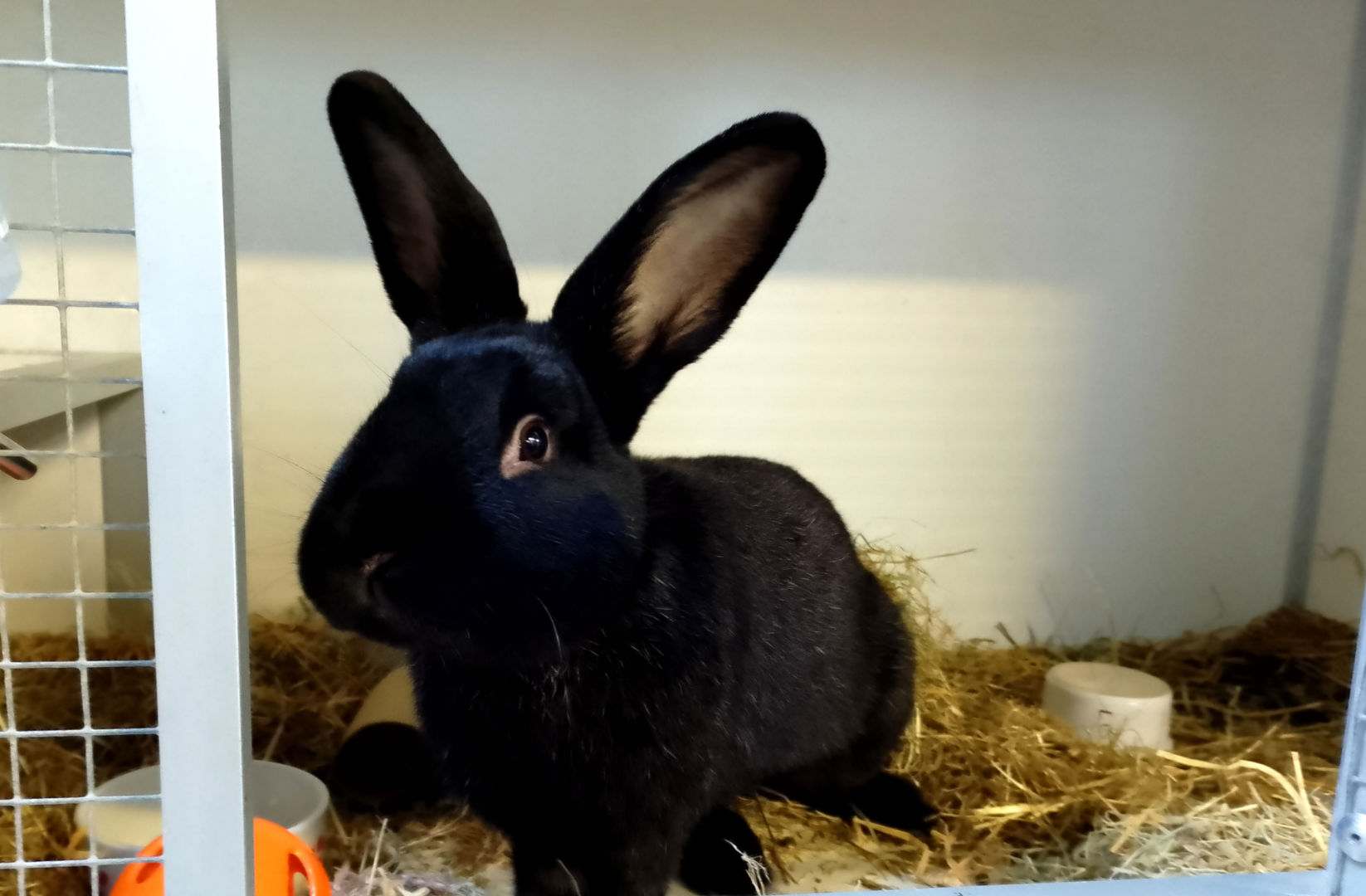 Een mooi, groot konijn dat opzoek is naar een vriendinnetje en een eigen huis.