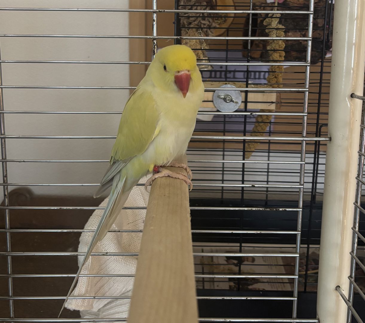 11025 Iago. Halsbandparkiet. Gevonden op 15/12/25 aan de Snekertrekweg in Leeuwarden. Draagt een ring