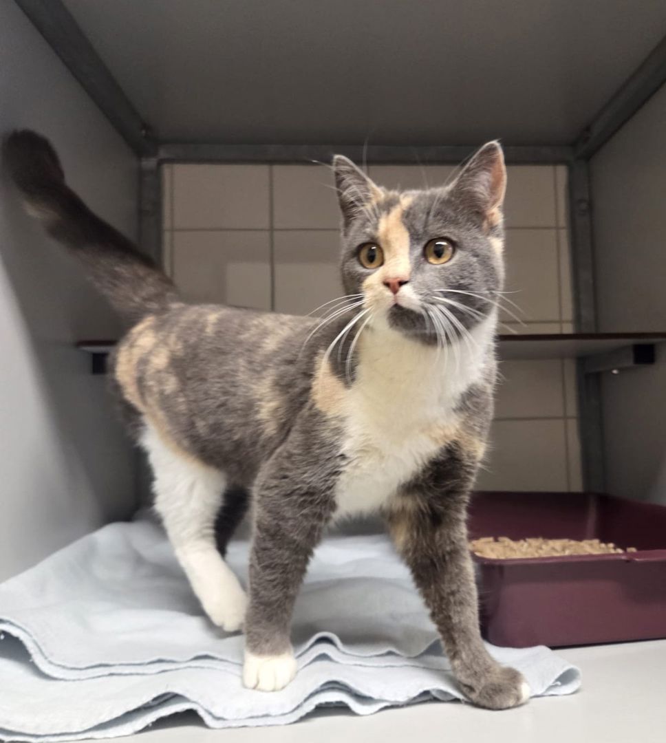 11651, Reba, gevonden 28 april 2026, omgeving Eastryp Dronryp. Liep op snelweg. Blauw/creme/witte poes