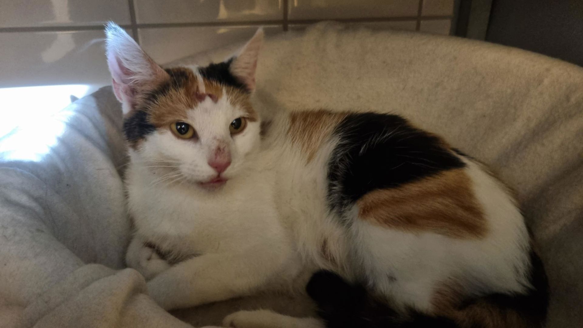 10629 Evi, vrouwtje, niet gesteriliseerd. Gevonden in Jorwert, Funs, op 18-01-25. Onderdeel van vangactie. Geen chip.