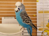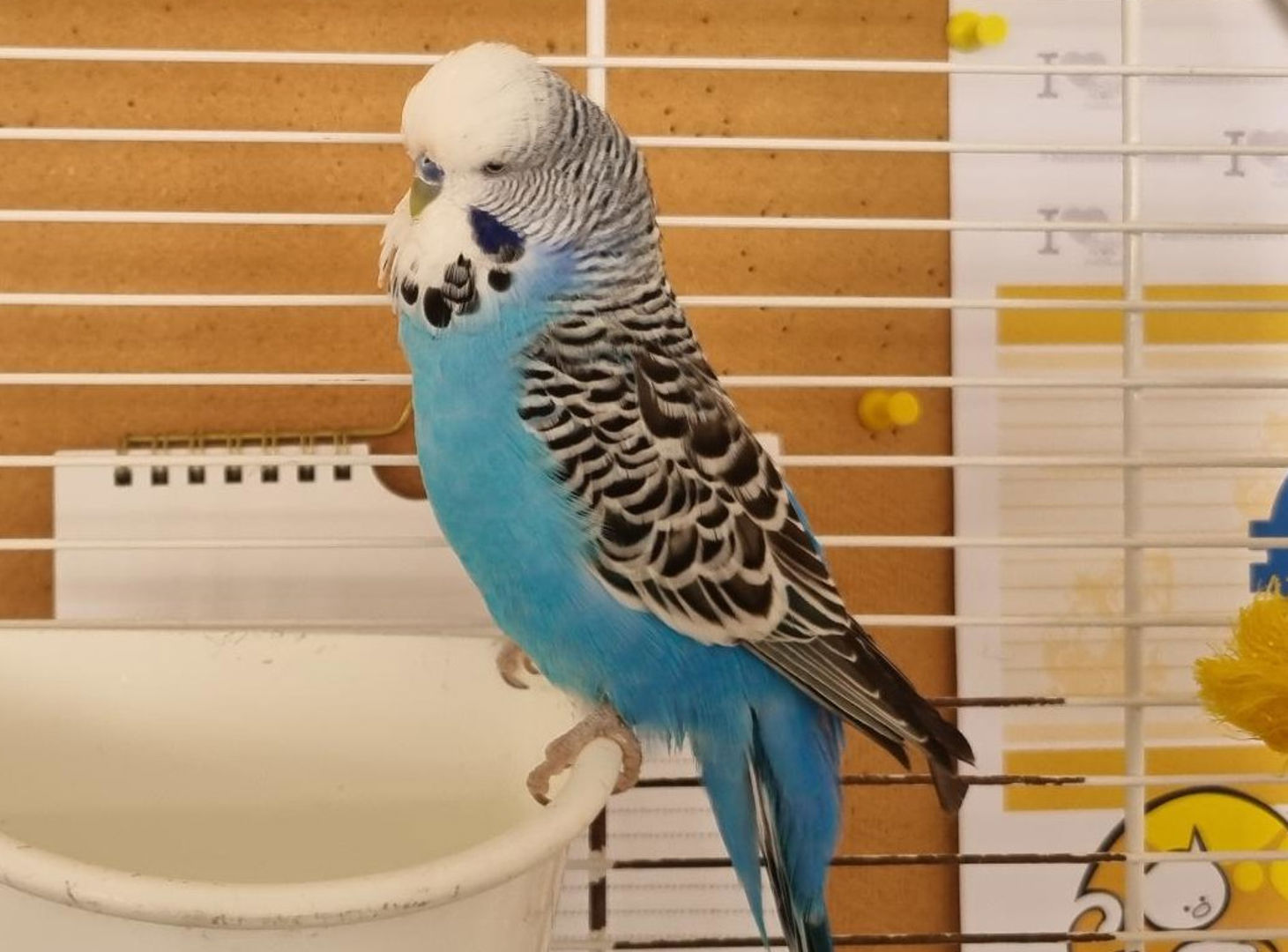 10605 Dodo, grasparkiet, blauw, man. Gevonden op 14-10-25 in Leeuwarden, Boeierstraat.
